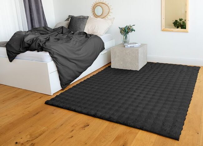 The stylish design fits into almost any furnishing style and ensures a pleasant feel-good atmosphere in the living rooms. The feel of the pile feels like real rabbit fur and is therefore particularly soft and comfortable. The anti-slip nubs on the back prevent the carpet from slipping. This means it can be used optimally as a rug in front of the bed in the bedroom so that you can feel the pleasant feeling under your feet as soon as you get up. But this rug is also ideal for cozy hours in front of the fireplace.