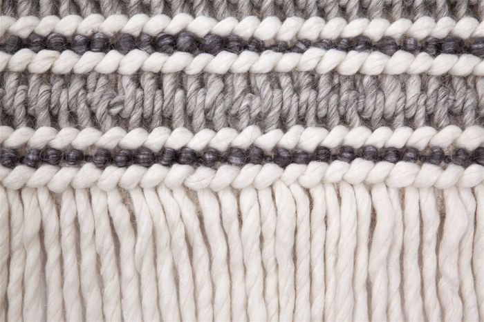 **Handwoven fringe rug** This rug fits into any interior! The subtle natural tones of the flat-woven rug integrate perfectly into any style of living, whether modern, rustic or particularly unusual. The long gray fringes complete the attractive striped pattern in harmonious shades of natural and gray. The loosening fringes also create a cozy atmosphere in the area. The soft feel of 75% New Zealand wool and 25% viscose is very pleasant even barefoot and is also robust and easy to care for. The cotton backing reinforces the rug. With the flat pile rug with fringes you get a unique one-of-a-kind item, because with natural products there can be up to 30% deviation from the picture in color and shape due to the material and handwork. This fringe rug is exactly the right choice for nature lovers and lovers of classic and subtle designs. So that there is the right variant for every room, the rug can be ordered in different sizes. Other colors are also available in our shop.