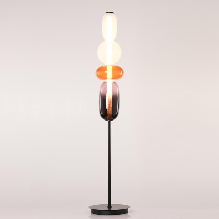 Decorative table lamp with two light objects made of metal