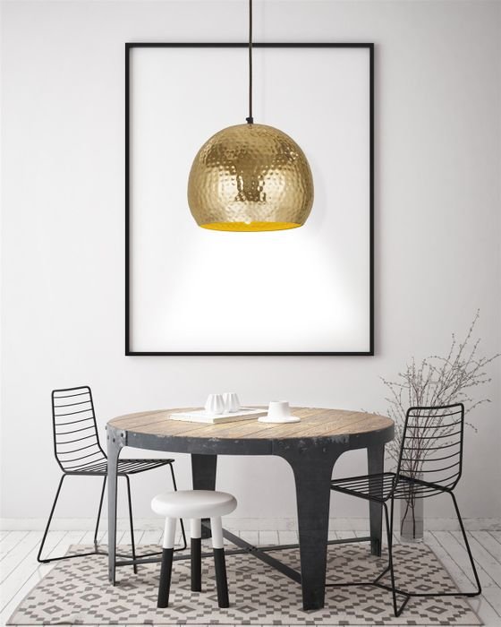 **Design hanging lamp in industrial design** This beautiful round hanging lamp is decorative and elegant, perfect for stylishly furnished, elegant living rooms, dining rooms, bedrooms and entrance areas. The elaborately refined material with recessed lamp holder means elegance for every ceiling and is an aesthetic highlight with its own character. The designer pendant light delights with its warm color and exquisite design. In addition, the unusual designer hanging lamp lets its direct light shine warmly through the room and creates a pleasant room atmosphere. The lamp's actual color may differ from the pictures.