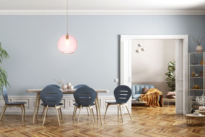 **Glass hanging lamp in a modern design** The hanging lamp is ideal for atmospheric lighting in any room. The downward-opening glass lampshade is translucent and gives off beautiful lighting effects to the surroundings. Its special design gives the lamp both a modern and puristic look. This lamp is ideal for use as stylish lighting above the kitchen or dining table. The model not only cuts a fine figure as a single ceiling lamp, but can also be optimally combined with other lamp models of the same or a different type. Combine the attractive hanging lamp with a decorative table lamp that can be used when softer light is required. With the right combination of different lamps, you can create atmospheric lighting for any living area. The actual color of the lamp may differ from the pictures. The lamp is operated with E27 bulbs with a maximum of 40 W, which are not included in the scope of delivery and must be purchased separately.
