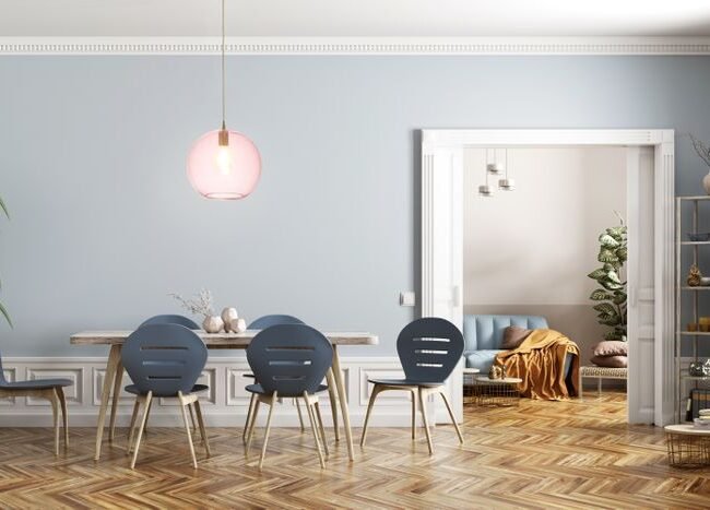 **Modern hanging lamp made of glass** With this glass hanging lamp you can bring an attractive retro charm and atmospheric lighting into your home. The glass lampshade lets warm light into the environment and creates a homely ambience. The stylish design gives the lamp a trendy retro charm and a modern overall look. The lamp can be ideally attached to the ceiling above the dining area in the kitchen or dining room and creates suitable lighting. The model not only cuts a fine figure as a single ceiling lamp. The combination of several lamps of the same or different models also creates a harmonious overall picture in the room. For example, you can also use a dimmable ceiling light or a table lamp to get an atmospheric, softer light if required. The actual color of the lamp may differ from the pictures. E27 bulbs with 40W are required for operation, which are not included in the scope of delivery.