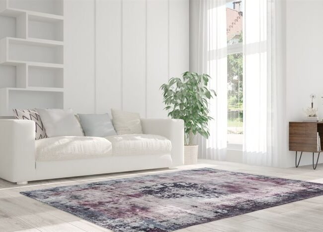 **Timeless vintage design meets washed-out look** This exciting carpet scores with its trendy appearance. Available in the trendy colors rust or blue. The digitally printed carpet looks very high-quality and feels soft when used. It is still very easy to clean and maintain. Specifications: • Available colors: blue / rust • Pile height: approx. 13mm • Material: 75% cotton, 25% polyester • Size: 80cm x 150cm / 120cm x 170cm / 160cm x 230cm