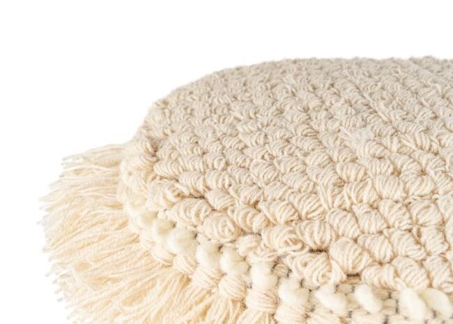 This stool creates a pleasant atmosphere and ensures a relaxed room climate. Its texture itself gives an inviting impression when you look at it. The beautifully placed fringes and tassels, which are typical of the boho style, further underline its appearance. Thanks to these structures, they give character to different incident light. Used as an element in the design of a variety of interior spaces, it leaves a lasting impression in living spaces and is becoming the ultimate style element.