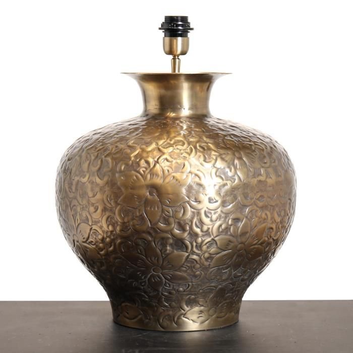 Introducing Carolina, a timeless addition to your decor. This table lamp boasts a classic silhouette crafted from durable metal, offering enduring elegance. Adorned with a delicate flower design imprinted on its surface, Carolina exudes a charming allure. Atop the lamp sits a versatile light fixture, ready to accommodate your preferred lampshade for customized illumination. With its blend of classic shape and intricate detailing, Carolina adds a touch of vintage-inspired refinement to any room. To view our current collection of handmade lampshades, visit our Cash and Carry.