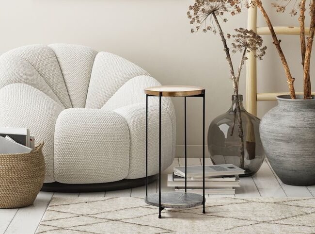 Login to see pricesMinimalist C-shaped side table made of stainless steel