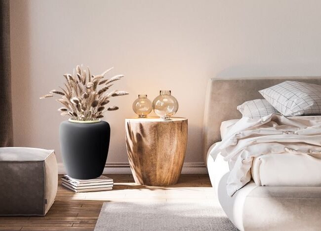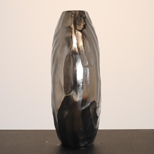 <p>The decorative vase Dentro is a stylish podium for your bouquet of dried or silk flowers and branches. The carved pattern in the vase gives it a unique look. Perfect for on a side table, or as an eye catcher in a windowsill or on a pillar. Made from thick metal with a black coating, the vase is robust and easily cleaned with a damp cloth. Note: The vase is not suitable for fresh flowers without a plastic or glass inner container.</p>
