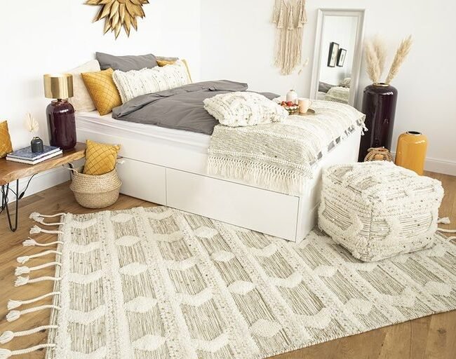 The micropolyester used is manufactured through the combined use of manual and machine production steps. Its height and soft texture make this rug an absolute favorite. Thanks to its low weight, it is very easy to transport. The use of cotton on the back strengthens the carpet. It is also suitable for underfloor heating.