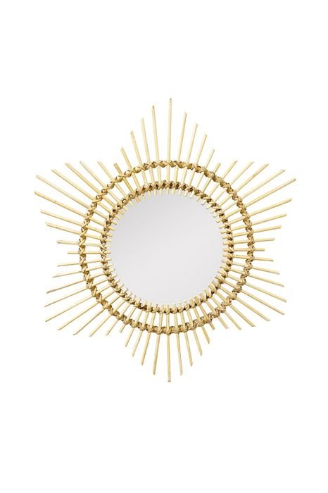 **Mirror with rattan: a stylish wall mirror with a difference** This unusual wall mirror proves that "different" can be good. With its rattan frame, the round mirror becomes a real eye-catcher in every room. Whether in the shape of a flower or a star, it will beautify your rooms. It is also so easy and flexible to install, because its light weight can support almost any wall. The round wall mirror is therefore just as suitable for small rooms, which it enhances and visually enlarges. The natural design of rattan loosens up the overall picture. In just a few steps, you can create more aesthetics in your home. How about, for example, the chic mirror in the hallway or above the sideboard in the bedroom? The model with rattan also creates highlights in the living room. Simply realize your individual living ideas, because the mirrors can also be stylishly arranged next to each other. Since these mirrors are handmade, small deviations in shape and color may occur.