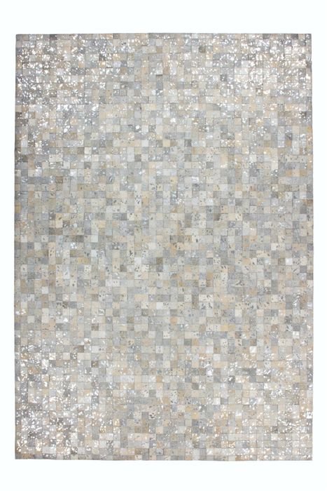 Metallic applications on genuine leather with soft hair characterize this carpet. Bring the individual eye-catcher home and your visitors will be amazed. The basis of the leather carpet in a patchwork design is formed by different nuances of a color. The printed metallic foil is the special highlight of the carpet, sets accents and makes the carpet shine.
