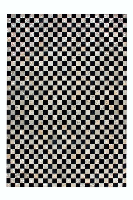 Metallic applications on genuine leather with soft hair characterize this carpet. Bring the individual eye-catcher home and your visitors will be amazed. The basis of the leather carpet in a patchwork design is formed by different nuances of a color. The printed metallic foil is the special highlight of the carpet, sets accents and makes the carpet shine.