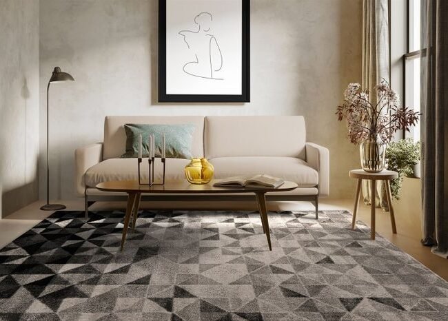 **Strikingly patterned short pile carpet in an elegant design**