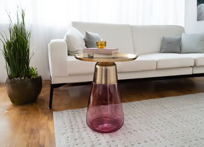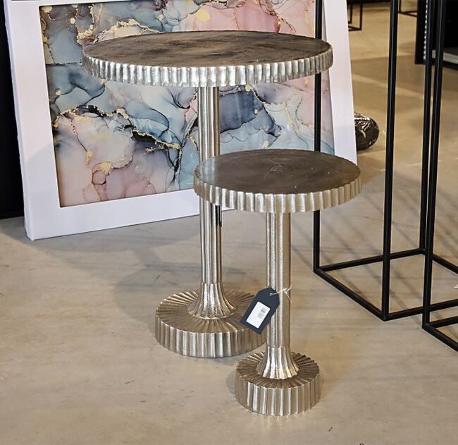**Side table in a stepped design** The stepped design of this side table attracts everyone's attention. The different table tops offer a generous storage area. The MDF table tops are covered with a glossy coating that ensures a smooth, decorative and easy-care surface. The table tops are connected to each other by a metal frame and, in combination with the decorative bamboo legs, form a stable, stylish overall unit. Regardless of whether you use the designer table as a serving table during an evening in front of the TV or in the form of a decorative table as a storage space for candlesticks, vases or decorative figures, it looks great in any living room and is guaranteed not to get boring. The actual color of the table may differ from the pictures.
