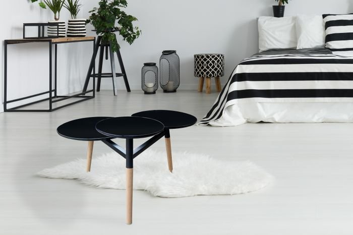 **Side table in a stepped design** The stepped design of this side table attracts everyone's attention. The different table tops offer a generous storage area. The MDF table tops are covered with a glossy coating that ensures a smooth, decorative and easy-care surface. The table tops are connected to each other by a metal frame and, in combination with the decorative bamboo legs, form a stable, stylish overall unit. Regardless of whether you use the designer table as a serving table during an evening in front of the TV or in the form of a decorative table as a storage space for candlesticks, vases or decorative figures, it looks great in any living room and is guaranteed not to get boring. The actual color of the table may differ from the pictures.