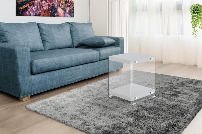 **Side table with a modern design** The modern design of this side table is characterized by the transparent glass side walls and the plain-colored storage areas. At the same time, the design is unobtrusive and can be integrated into various furnishing styles. The side table is part of a furniture series, so that you can create a uniform, harmonious overall ambience in the room by combining it with other pieces of furniture. The side table is ideal for placing things that you would like to have close at hand. Whether as a side table in the living room, as a bedside table in the bedroom or as a shelf in the hallway – the table is versatile and a practical and decorative piece of furniture at the same time. Furnish your home stylishly with furniture from this furniture series and combine, for example, a side table and a shelf. The actual color of the table may differ from the pictures.
