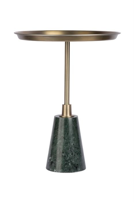 **Side table with marble base in an elegant design** Elegant design and unique character are combined in this side table. It impresses with the interplay of materials used. Marble, iron and aluminum create a high-quality overall image and set accents. The table not only serves as a stand-alone decorative object, but also as the basis for other furnishings. Its variety of combinations is unparalleled. Used correctly, it unfolds its full potential and becomes an eye-catcher in the design of interiors. It is handmade and uses only high-quality materials. Thanks to its marble base, it is stable and its robust support surface offers space for further ideas. These want to be noticed and perceived by the viewer. Available in various color combinations, it fits seamlessly into the existing interior design. Note: Marble is a natural stone, the color and marbling of which can always differ from the image. Each product is unique.
