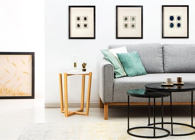 **Round table in retro style** The combination of minimalism and retro style makes this round side table an eye-catcher. The table's simple metal frame and round table top give it its minimalist character. The model is spiced up by the colored table top, which also gives the table its retro style. The round basic shape of the conical metal frame and the round table top form a harmonious whole. The raised edge of the table top prevents objects placed on the table from accidentally falling off. The smooth surfaces make the table easy to care for and clean. The actual color of the table may differ from the pictures.