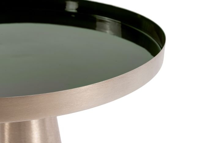 **Round table in retro style** The combination of minimalism and retro style makes this round side table an eye-catcher. The table's simple metal frame and round table top give it its minimalist character. The model is spiced up by the colored table top, which also gives the table its retro style. The round basic shape of the conical metal frame and the round table top form a harmonious whole. The raised edge of the table top prevents objects placed on the table from accidentally falling off. The smooth surfaces make the table easy to care for and clean. The actual color of the table may differ from the pictures.