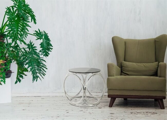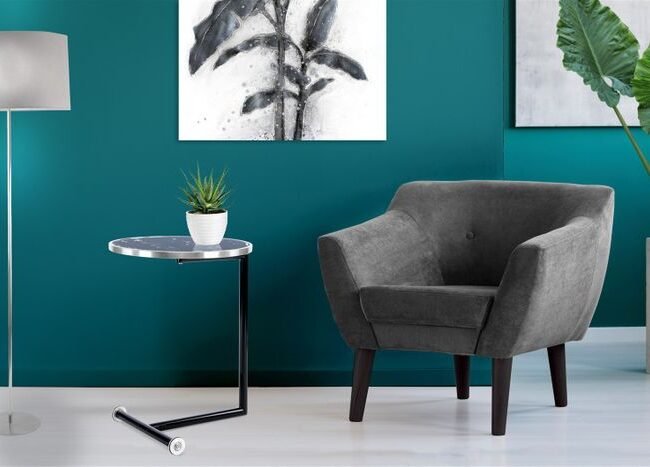 **Round table in retro style** The combination of minimalism and retro style makes this round side table an eye-catcher. The table's simple metal frame and round table top give it its minimalist character. The model is spiced up by the colored table top, which also gives the table its retro style. The round basic shape of the conical metal frame and the round table top form a harmonious whole. The raised edge of the table top prevents objects placed on the table from accidentally falling off. The smooth surfaces make the table easy to care for and clean. The actual color of the table may differ from the pictures.