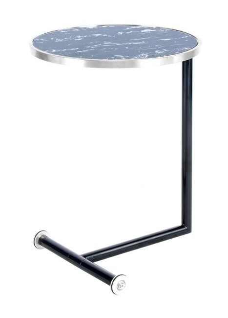 **Round table in retro style** The combination of minimalism and retro style makes this round side table an eye-catcher. The table's simple metal frame and round table top give it its minimalist character. The model is spiced up by the colored table top, which also gives the table its retro style. The round basic shape of the conical metal frame and the round table top form a harmonious whole. The raised edge of the table top prevents objects placed on the table from accidentally falling off. The smooth surfaces make the table easy to care for and clean. The actual color of the table may differ from the pictures.