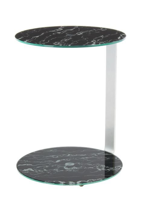 **Trendy side table in retro design** With this side table you get a glamorous and futuristic ambience in retro style. The hand-blown glass frame, covered with the golden metal table top, gives the table its very special, unmistakable style. Whether as a side table, coffee table or eye-catcher. This table impresses with its goblet-shaped base and the generous storage area of ​​the table top (LxWxH) 36 x 36 x 48 cm, for all things that should be within easy reach. Use the futuristic effect of this table and consciously use it as decoration. No matter how you want to use the table, it offers a variety of design and usage options. The stylish design, the lavish frame and the elegant combination of glass and metal give the table its special and trendy character. The golden table top can be easily wiped off if it gets dirty. Thanks to its attractive shape, it can not only be placed in the room or on the wall, but also in a corner to accentuate it. Its distinctive design means it can have its full, elegant effect in any room. Available in green/gold, pink/gold, blue/gold and grey/gold. Also available in other combinable designs. The actual colour of the table may differ from the pictures.