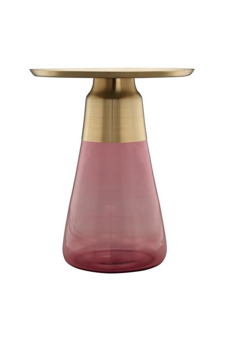 **Superlative handcrafted glass side table** This side table gives you a glamorous and futuristic ambience in retro style. The hand-blown glass frame, covered with the golden metal table top, gives the table its very special, unmistakable style. Whether as a side table, coffee table or eye-catcher. This table impresses with its cylinder-like base and the shiny gold table top for all things that should be within easy reach. Use the futuristic effect of this table and consciously use it as decoration. No matter how you want to use the table, it offers a wide range of design and usage options. The stylish design, the lavish frame and the elegant combination of glass and metal give the table its special and trendy character. The golden metal table top can be easily wiped off if it gets dirty. Thanks to its attractive shape, it can be placed not only in the room or on the wall, but also in a corner. Thanks to its unmistakable design, it can unfold its full elegant effect in any room. Available in green/gold, pink/gold, blue/gold and grey/gold. Also available in other combinable designs. The actual colour of the table may differ from the pictures.