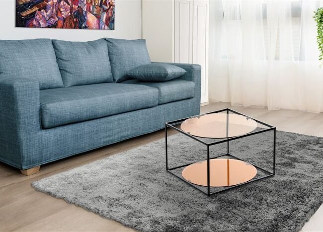**Superlative handcrafted glass side table** This side table gives you a glamorous and futuristic ambience in retro style. The hand-blown glass frame, covered with the golden metal table top, gives the table its very special, unmistakable style. Whether as a side table, coffee table or eye-catcher. This table impresses with its cylinder-like base and the shiny gold table top for all things that should be within easy reach. Use the futuristic effect of this table and consciously use it as decoration. No matter how you want to use the table, it offers a wide range of design and usage options. The stylish design, the lavish frame and the elegant combination of glass and metal give the table its special and trendy character. The golden metal table top can be easily wiped off if it gets dirty. Thanks to its attractive shape, it can be placed not only in the room or on the wall, but also in a corner. Thanks to its unmistakable design, it can unfold its full elegant effect in any room. Available in green/gold, pink/gold, blue/gold and grey/gold. Also available in other combinable designs. The actual colour of the table may differ from the pictures.