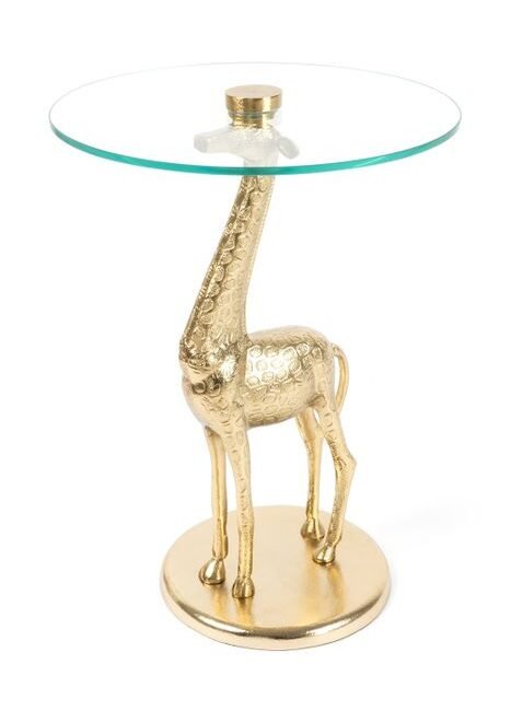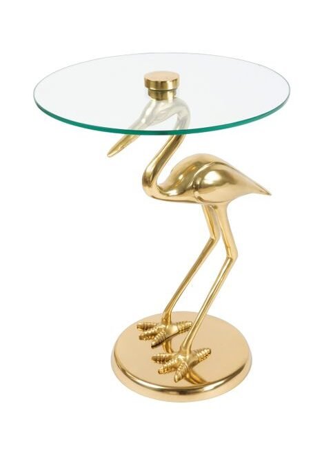 **Superlative handcrafted glass side table** This side table gives you a glamorous and futuristic ambience in retro style. The hand-blown glass frame, covered with the golden metal table top, gives the table its very special, unmistakable style. Whether as a side table, coffee table or eye-catcher. This table impresses with its cylinder-like base and the shiny gold table top for all things that should be within easy reach. Use the futuristic effect of this table and consciously use it as decoration. No matter how you want to use the table, it offers a wide range of design and usage options. The stylish design, the lavish frame and the elegant combination of glass and metal give the table its special and trendy character. The golden metal table top can be easily wiped off if it gets dirty. Thanks to its attractive shape, it can be placed not only in the room or on the wall, but also in a corner. Thanks to its unmistakable design, it can unfold its full elegant effect in any room. Available in green/gold, pink/gold, blue/gold and grey/gold. Also available in other combinable designs. The actual colour of the table may differ from the pictures.