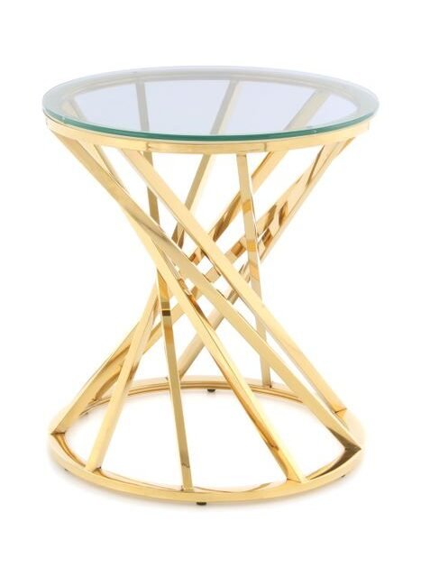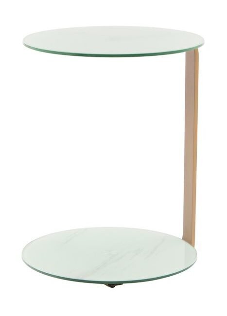 **Side table in an elegant design** The open design of this side table creates a modern and inviting ambience. The metal frame made of various assembled elements gives the table its special look. Combined with the glass table top, the result is a harmonious overall picture with an elegant character. The table cuts a particularly good figure in luxurious interiors. But it also adds that certain something to modern and classic interiors. The round basic shape and the round table top make the table very appealing. The edgeless, smooth surface makes it easy to wipe down the piece of furniture. Whether as a practical side table and storage space or as a place for stylish decoration – this table is impressive in every respect. The actual color of the table may differ from the pictures.