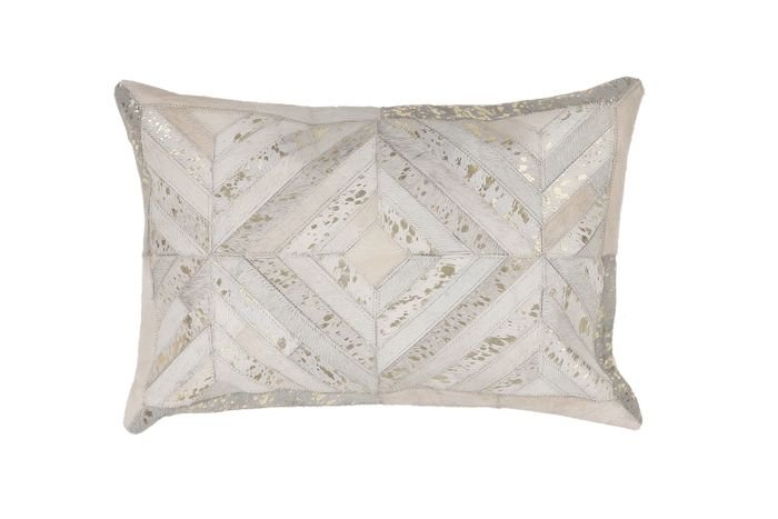 **Leather cushion** The beautiful leather cushion brings a new level of comfort to your rooms. You will definitely not get bored here. With this cushion, your individual taste is paramount. Easy to care for and hard-wearing at the same time, the beautiful leather cushion requires no work and retains its original shape for a long time. The design is particularly exquisite and enchants with its elegant charm. Made by hand, each individual leather cushion is unique. The use of fine natural materials and the high-quality workmanship ensure a dynamic look. The metallic effect also adds a classy touch to any room. The natural fur of the cushion cover may lose hair after some time and with heavy use. Metallic foil may also come off under certain circumstances. This is due to the natural product and the nature of the fur and is not a manufacturing defect. The soft cushion filling made of polystyrene balls ensures pleasant comfort and helps to create a cozy oasis.
