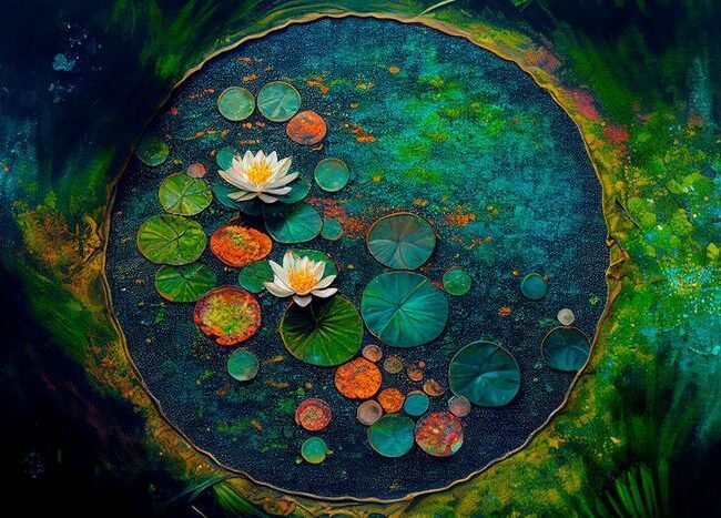 Login to see pricesGlasschilderij 120x80cm Waterplanten in een cirkel