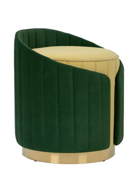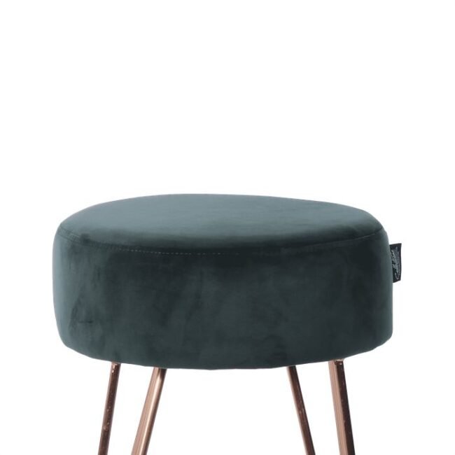 **Round pouf with metal element** This stool combines a modern round shape with a stylish floral design. The glamorous look is intensified by the velvety soft fabric cover with shiny metallic decorations. In combination with the softly padded seat, the stool is a comfortable seat for any room. Thanks to the low seat height, it is ideal for integration into the living area in the living room, but also as a practical stool for putting on and taking off shoes in the hallway. The golden base gives the stool a glamorous look that has a positive effect on the environment. No matter which room you use the stool in, it will be an attractive eye-catcher.