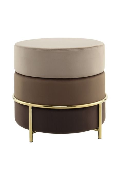 **Pouf with an elegant frame** This round stool offers pleasant seating comfort thanks to its soft feel and elegant fabric cover. The pouf is not only an attractive piece of furniture in terms of appearance. The timeless yet striking design with elegant metal elements makes the stool an eye-catcher in every room and brings elegance and a feel-good character. No matter where you put the stool – it will quickly become an eye-catcher in your living room. The actual color of the piece of furniture may differ slightly from the pictures. Different color nuances can arise due to different incidence of light and different stroke directions of the fabric cover.