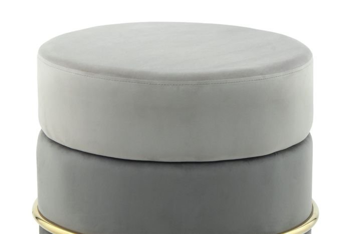 **Pouf with an elegant frame** This round stool offers pleasant seating comfort thanks to its soft feel and elegant fabric cover. The pouf is not only an attractive piece of furniture in terms of appearance. The timeless yet striking design with elegant metal elements makes the stool an eye-catcher in every room and brings elegance and a feel-good character. No matter where you put the stool – it will quickly become an eye-catcher in your living room. The actual color of the piece of furniture may differ slightly from the pictures. Different color nuances can arise due to different incidence of light and different stroke directions of the fabric cover.