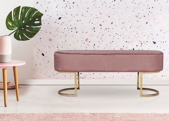 **Pouf with an elegant frame** This round stool offers pleasant seating comfort thanks to its soft feel and elegant fabric cover. The pouf is not only an attractive piece of furniture in terms of appearance. The timeless yet striking design with elegant metal elements makes the stool an eye-catcher in every room and brings elegance and a feel-good character. No matter where you put the stool – it will quickly become an eye-catcher in your living room. The actual color of the piece of furniture may differ slightly from the pictures. Different color nuances can arise due to different incidence of light and different stroke directions of the fabric cover.