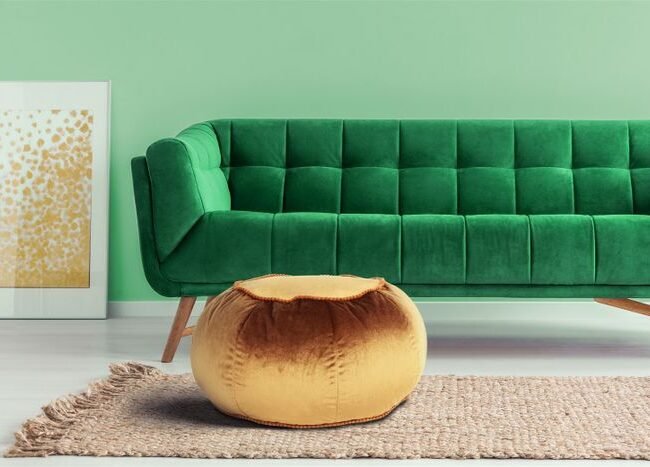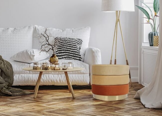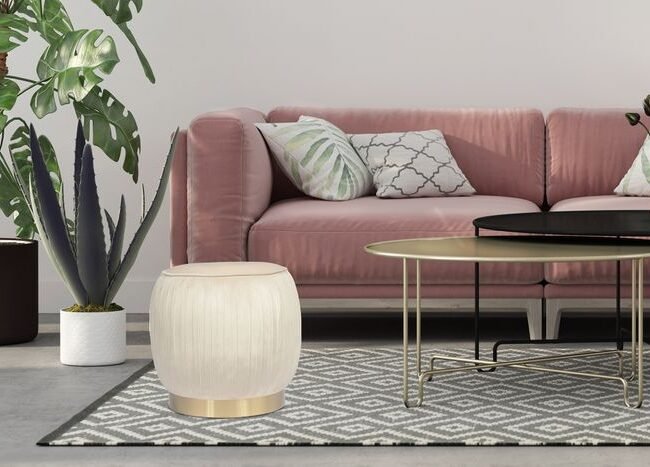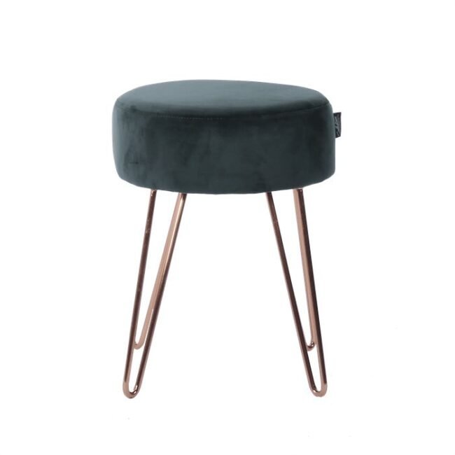 **Pouf with an elegant frame** This round stool offers pleasant seating comfort thanks to its soft feel and elegant fabric cover. The pouf is not only an attractive piece of furniture in terms of appearance. The timeless yet striking design with elegant metal elements makes the stool an eye-catcher in every room and brings elegance and a feel-good character. No matter where you put the stool – it will quickly become an eye-catcher in your living room. The actual color of the piece of furniture may differ slightly from the pictures. Different color nuances can arise due to different incidence of light and different stroke directions of the fabric cover.