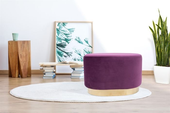 **Oval stool with polyester cover and metal base** Bring some excitement into your home with this alternative seating option. With its soft cover and metal base, the elegant oval stool is an eye-catcher in every room. It can be used in many ways as a seat, side table or storage space and, thanks to its low weight, can be placed anywhere in the room. This great home accessory is an elegant addition to any living area. The simple design of the stool can be harmoniously integrated into various furnishing styles and becomes a decorative highlight in any room. The beautiful design is combined with high seating comfort. The oval frame is enhanced by soft foam material and an easy-care fabric pull. Create additional comfort in the bedroom or living room with the attractive stool and underline the overall concept in the room. With matching furniture, carpets, cushions and attractive home decoration, you can create your very own oasis of well-being. The actual color of the piece of furniture may differ from the pictures. Different color nuances can arise due to different incidence of light and different stroke directions of the fabric cover.