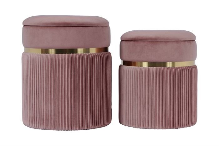 **Set of 2 stools with storage space** With this set you get two stools in different sizes but with the same design. The modern two-tone design is given a glamorous character by an elegant metal ring. The two colors are visually separated from each other by the ring and yet form a harmonious unit. The velvety soft fabric cover and the round shape make the stools look soft. In terms of comfort, it is in no way inferior to the stools. The seats are softly padded and thus offer a comfortable seat that can be used in any room. A stool can be used optimally as a seat at low tables, such as coffee tables, for example. Two additional seats for visitors are always available with these stools. If the space is needed for something else, the stools can be easily moved thanks to their light weight or put to the side to save space so that they can be taken out again when needed. The special feature of these stools is the storage space inside. Thanks to the removable seat, it can be easily used to store items that are not currently in use. Use the stool as a seat, as a footrest or as a storage box and enjoy this practical and decorative piece of furniture. The actual color of the piece of furniture may differ from the pictures. Different light incidence and different stroke directions of the fabric cover can result in different color nuances.