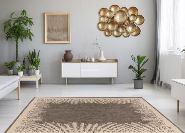 **Indoor and outdoor carpet in a modern design** This modern carpet can be used in many ways both indoors and outdoors. It is handmade from 100% polyester and can withstand any weather thanks to its robust material. Rain, strong sunlight or wind cannot harm the carpet – it retains its shape and color for a long time. Move your living area outside in the summer and take your carpet with you. With the 5 mm high pile, you can give your garden, balcony or terrace a very special flair. But the flat pile carpet is not only suitable for outdoor use, because the easy-care material also makes it ideal for frequently used indoor rooms. Whether in the kitchen, bathroom or entrance area – the carpet is easy to clean and dries quickly. It can even be used on underfloor heating without any problems. The main element of the graphic pattern is triangles. The symmetry and repetitions of the pattern have a charming effect and at the same time bring a light ethnic style to your surroundings. The two-tone carpet is available in different colors and can therefore be combined with almost any style of your indoor or outdoor area. In addition, different sizes are available so that the carpet can be used for every need. As the carpet is handmade, there may be slight deviations in pattern, colors and size.