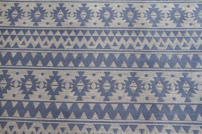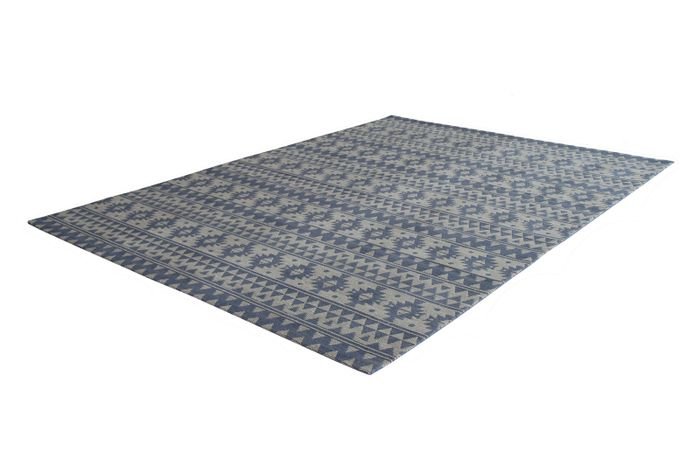 **Indoor and outdoor carpet in a modern design** This modern carpet can be used in many ways both indoors and outdoors. It is handmade from 100% polyester and can withstand any weather thanks to its robust material. Rain, strong sunlight or wind cannot harm the carpet – it retains its shape and color for a long time. Move your living area outside in the summer and take your carpet with you. With the 5 mm high pile, you can give your garden, balcony or terrace a very special flair. But the flat pile carpet is not only suitable for outdoor use, because the easy-care material also makes it ideal for frequently used indoor rooms. Whether in the kitchen, bathroom or entrance area – the carpet is easy to clean and dries quickly. It can even be used on underfloor heating without any problems. The main element of the graphic pattern is triangles. The symmetry and repetitions of the pattern have a charming effect and at the same time bring a light ethnic style to your surroundings. The two-tone carpet is available in different colors and can therefore be combined with almost any style of your indoor or outdoor area. In addition, different sizes are available so that the carpet can be used for every need. As the carpet is handmade, there may be slight deviations in pattern, colors and size.