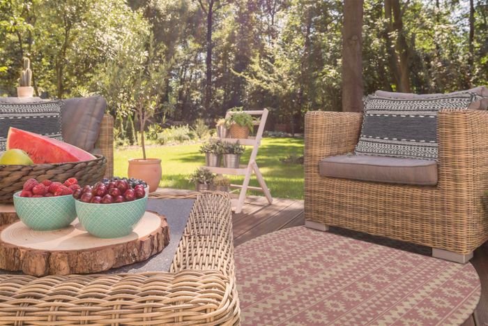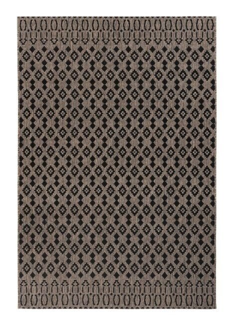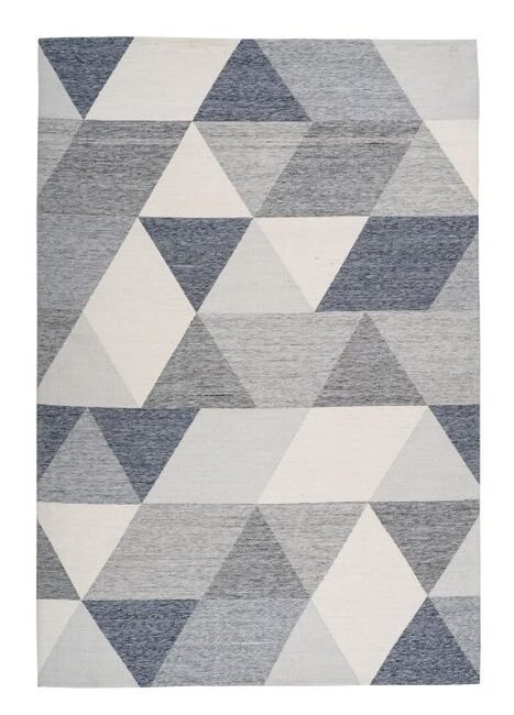 **Indoor and outdoor carpet in a modern design** This modern carpet can be used in many ways both indoors and outdoors. It is handmade from 100% polyester and can withstand any weather thanks to its robust material. Rain, strong sunlight or wind cannot harm the carpet – it retains its shape and color for a long time. Move your living area outside in the summer and take your carpet with you. With the 5 mm high pile, you can give your garden, balcony or terrace a very special flair. But the flat pile carpet is not only suitable for outdoor use, because the easy-care material also makes it ideal for frequently used indoor rooms. Whether in the kitchen, bathroom or entrance area – the carpet is easy to clean and dries quickly. It can even be used on underfloor heating without any problems. The main element of the graphic pattern is triangles. The symmetry and repetitions of the pattern have a charming effect and at the same time bring a light ethnic style to your surroundings. The two-tone carpet is available in different colors and can therefore be combined with almost any style of your indoor or outdoor area. In addition, different sizes are available so that the carpet can be used for every need. As the carpet is handmade, there may be slight deviations in pattern, colors and size.