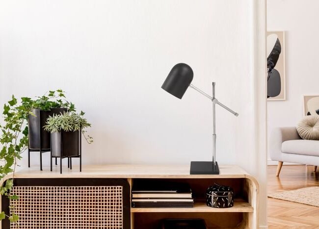 **Table lamp in an extravagant design** With this table lamp you can create an absolute eye-catcher thanks to its extravagant appearance. The metal frame with a round marble base forms a harmonious whole with the simple, minimalist lampshade, which is also made of metal. The puristic look also makes the lamp a stylish decorative element that creates a modern ambience in any room. The elegant design with the luxurious elements brings with it not only modernity but also a feeling of glamour. Thanks to the movable socket, the lamp's light source can be aimed specifically to create atmospheric focus lighting. Influence the overall look of the lamp by choosing an attractive light source, because the clearly visible light source contributes to the overall picture. The lamp can be easily switched on and off using the toggle switch integrated into the cable. The actual color of the lamp may differ from the pictures. Note: Marble is a natural stone, which can always differ in color and marbling from the picture. Each product is unique.