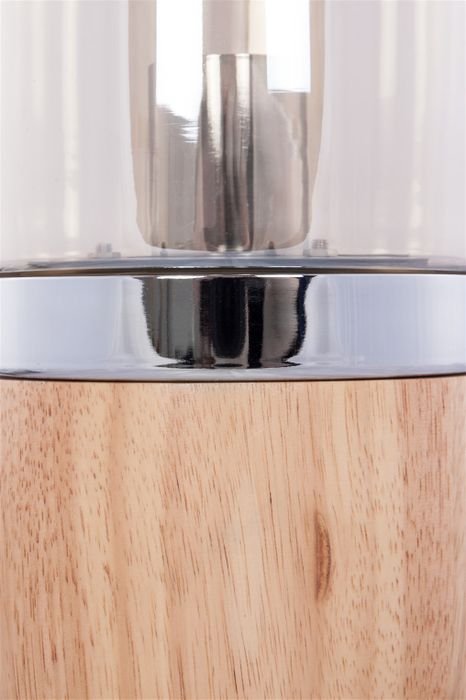**Table lamp with glass dome** The elegant table lamp is a newly interpreted design classic thanks to its material mix of glass and wood. The round wooden base is fitted with a translucent glass dome, which makes the lamp a stylish overall work. The attractive, stable wooden base has a warm character that can be enhanced by the light source used. The light from the light source can shine softly through the transparent glass, enveloping the surroundings in an atmospheric ambience. Whether in the office, living room or bedroom, this lamp provides defined lighting in every room. The timeless design can also be integrated into any style of living. The actual color of the lamp may differ from the pictures. Light sources are not included in the delivery.