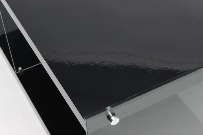 **TV table with a modern design** The modern design of this TV table is characterized by the transparent glass side walls and the plain-colored storage areas. At the same time, the design is unobtrusive and can be integrated into various furnishing styles. The TV table is part of a furniture series, so that you can create a uniform, harmonious overall ambience in the room by combining it with other pieces of furniture. The TV table not only has space for your TV, but also for other objects and decorative accents, as it has two additional compartments. Whether as a TV table in the living room or in the bedroom – the table is versatile and a practical and decorative piece of furniture at the same time. Furnish your home stylishly with furniture from this furniture series and combine, for example, a TV table and a shelf. The actual color of the TV table may differ from the pictures.