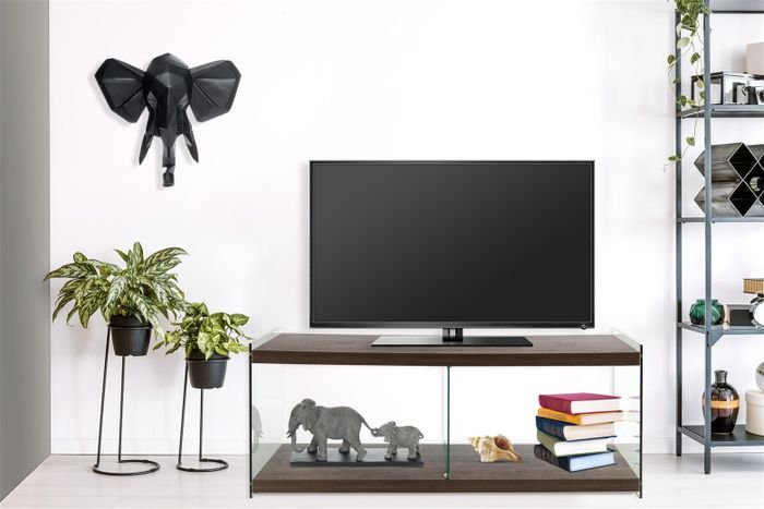 **TV table with a modern design** The modern design of this TV table is characterized by the transparent glass side walls and the plain-colored storage areas. At the same time, the design is unobtrusive and can be integrated into various furnishing styles. The TV table is part of a furniture series, so that you can create a uniform, harmonious overall ambience in the room by combining it with other pieces of furniture. The TV table not only has space for your TV, but also for other objects and decorative accents, as it has two additional compartments. Whether as a TV table in the living room or in the bedroom – the table is versatile and a practical and decorative piece of furniture at the same time. Furnish your home stylishly with furniture from this furniture series and combine, for example, a TV table and a shelf. The actual color of the TV table may differ from the pictures.