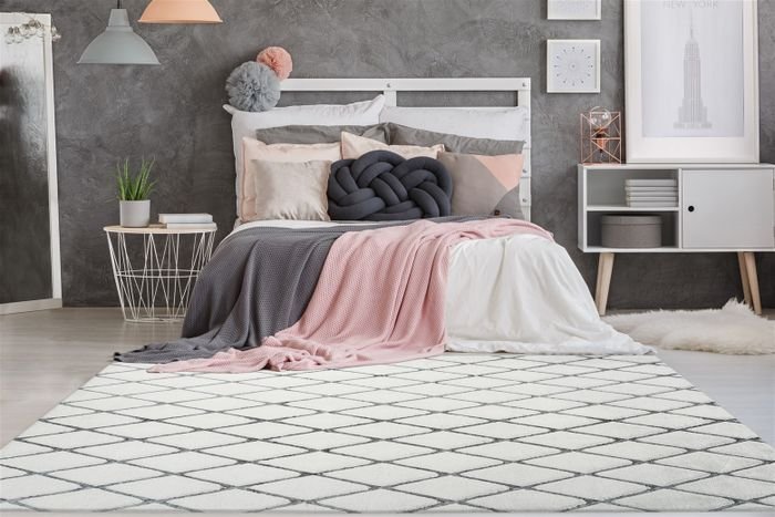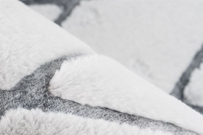 The special look of this shaggy rug is characterized by the attractive embossed pattern, which creates an attractive 3D effect. The geometric shapes of the pattern also give the carpet a stylish retro character. The otherwise simple and monochrome pile can be seen in any living space and can be combined with any interior thanks to its simple elegance. The cozy surface creates a cozy atmosphere in the room. The carpet can also be easily laid out in rooms with underfloor heating.