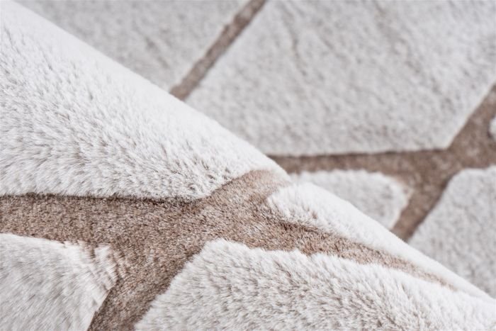 The special look of this shaggy rug is characterized by the attractive embossed pattern, which creates an attractive 3D effect. The geometric shapes of the pattern also give the carpet a stylish retro character. The otherwise simple and monochrome pile can be seen in any living space and can be combined with any interior thanks to its simple elegance. The cozy surface creates a cozy atmosphere in the room. The carpet can also be easily laid out in rooms with underfloor heating.
