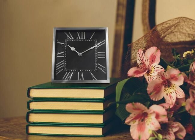 Login to see pricesElegant table clock with metal frame, Roman dial