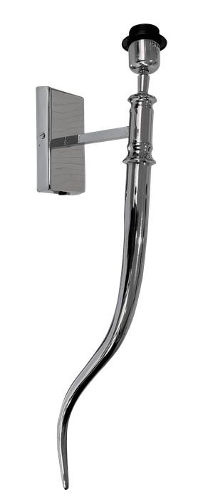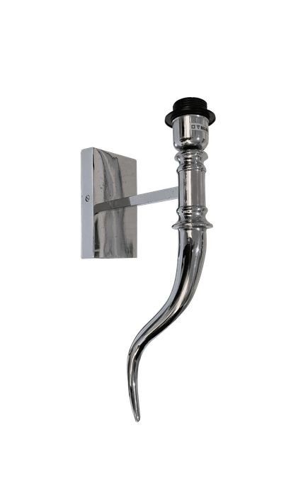 The Torsio wall lamp is a sleek addition to any space, crafted from aluminum with a shiny chrome coating. Inspired by the shape of a sable tooth, its design brings a touch of modern elegance to your decor. At the top, it features a light fixture ready for your choice of lampshade, allowing you to customize the ambiance to suit your style. To view our current collection of handmade lampshades, please visit our Cash and carry.
